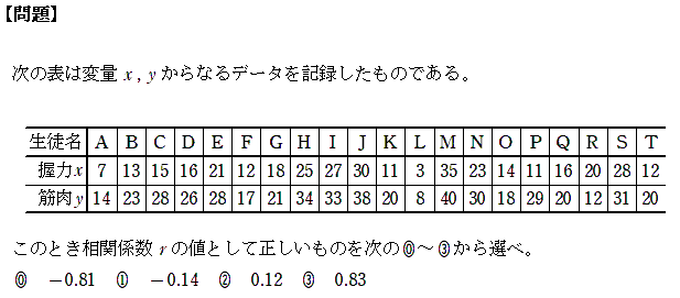 医学部専門予備校 京都医塾 » 京都医塾公式ブログ » 京都医塾講師からのアドバイス » データの分析の問題は”ノリ”も大事?~相関係数の問題から~