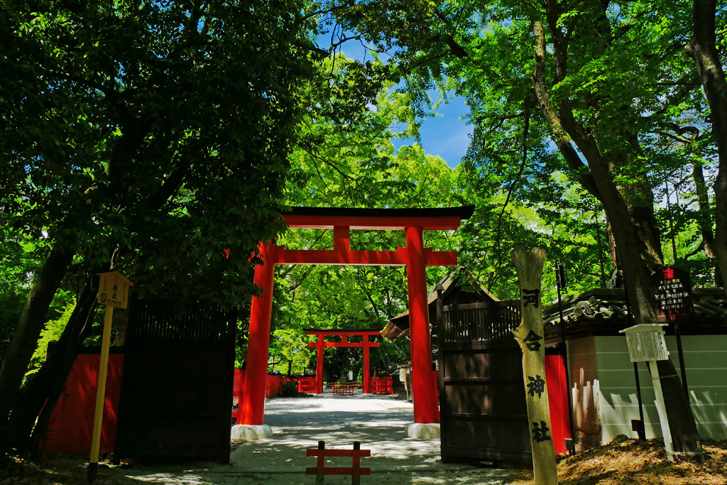 河合神社は、下鴨神社の第一摂社です。下鴨神社から、糺の森を通って南へ進むと河合神社があります。