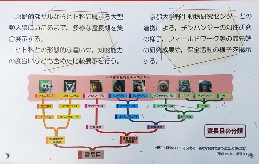 こちらは、京都市動物園に掲示されている霊長類の系統関係です。