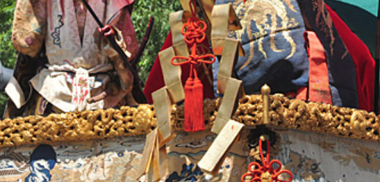 山鉾とは、「台の上に山の形の造り物をのせ、鉾や長刀なぎなたなどを立てたもの」。