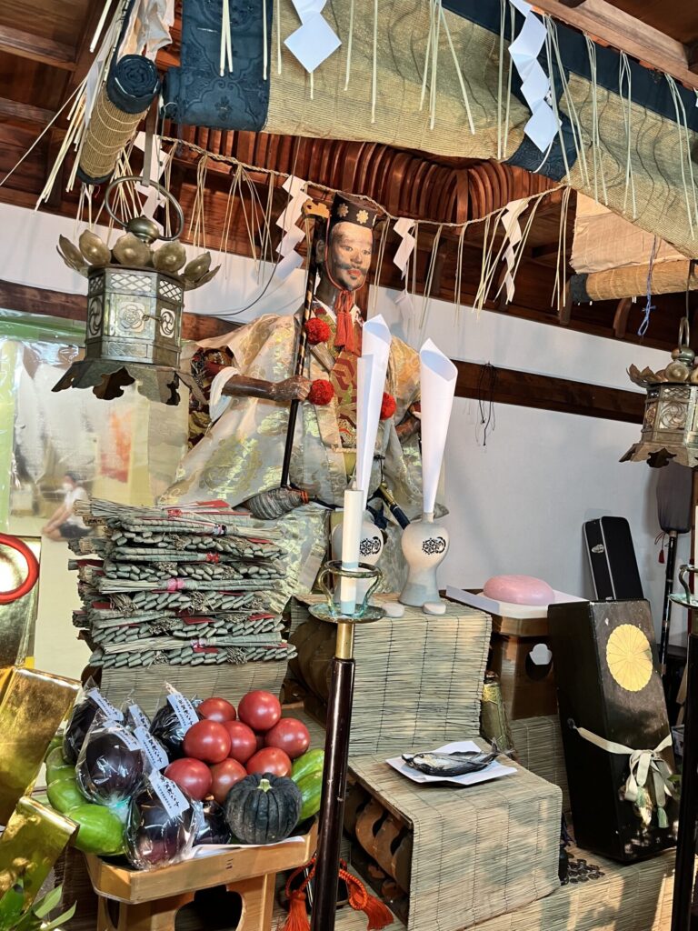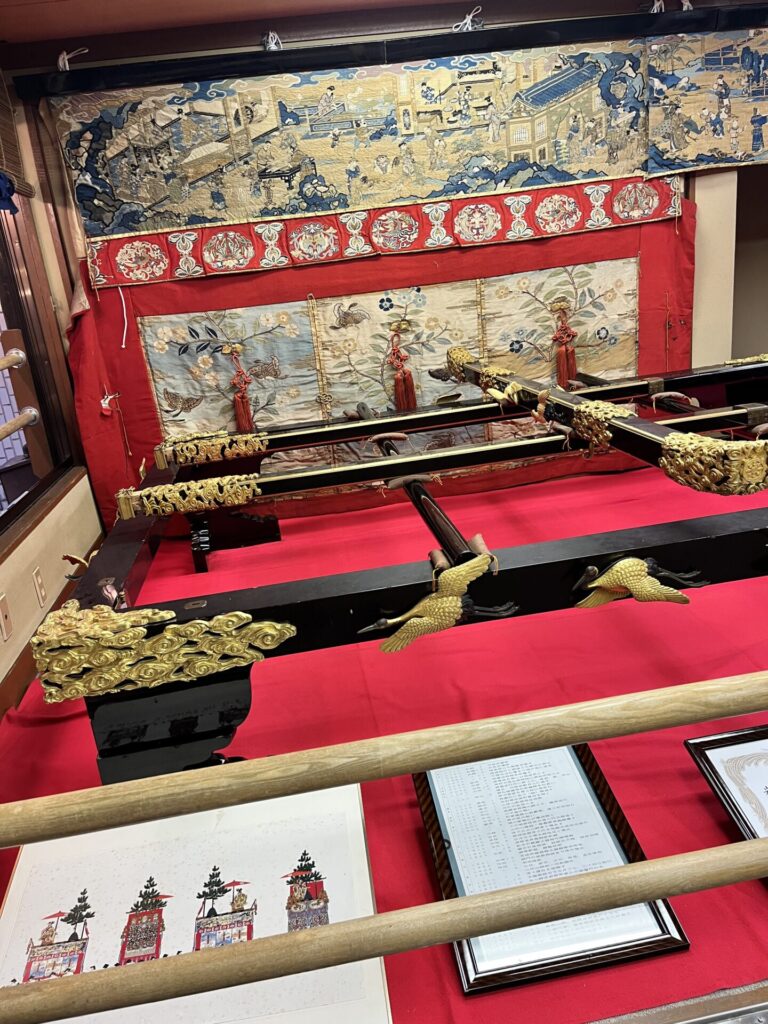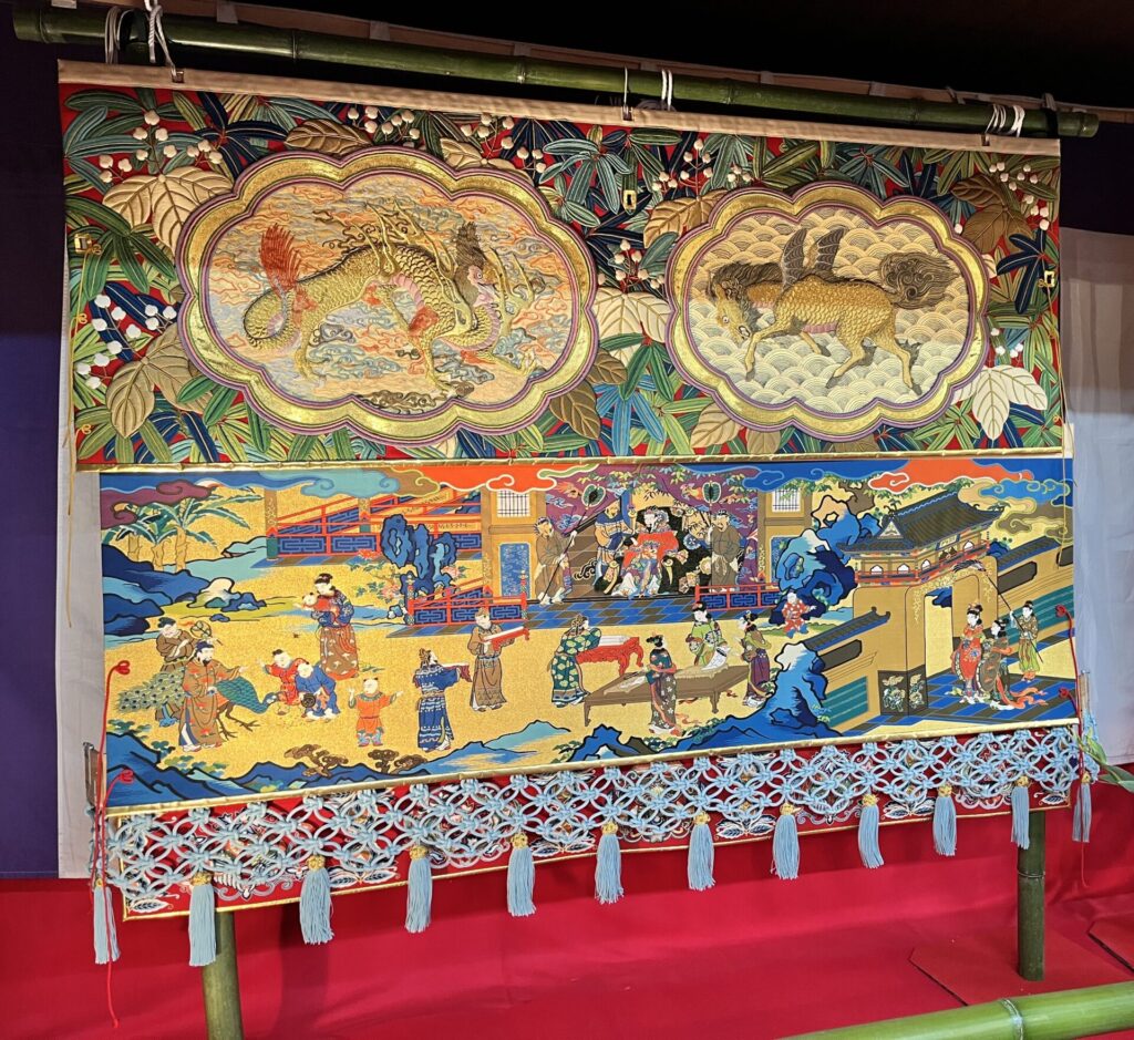 そして、町会所の最大の見どころは会所飾りです。 山鉾巡行の際に用いられる懸装品や御神体が展示されます。