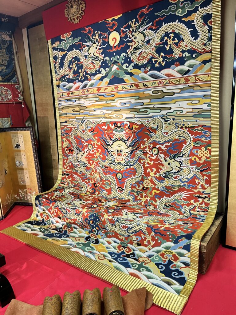 上は「龍麒麟図刺繍」です。麒麟と龍が描かれています。