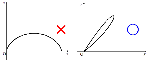 ① ”折り返し”がある曲線にしたい。つまり \(x\) も \(y\) も単調に変化するだけではないようにしたい。