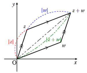 複素数平面における三角不等式は「和の絶対値は絶対値の和以下である」という不等式でしたが,