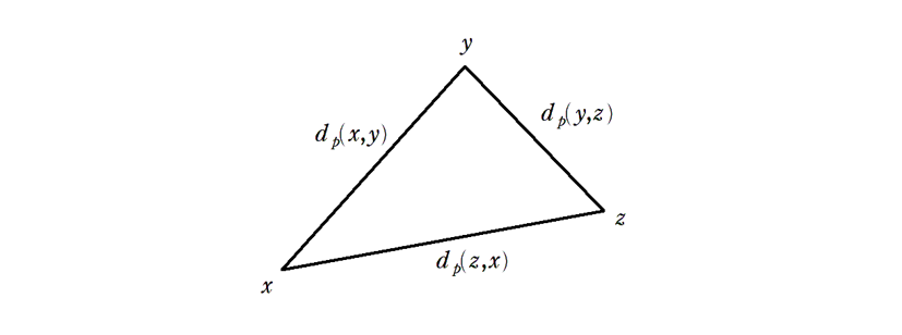 \(d_{p} (x,z) ≦ d_{p} (x,y) + d_{p} (y,z)\)