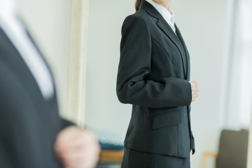スーツの色は黒や紺やグレーなどのダークな色、ワイシャツは白を選ぶと落ち着いた印象になります。