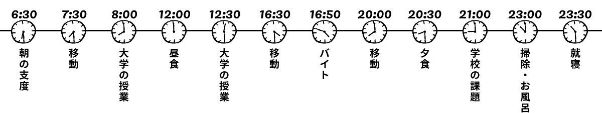 | 勤務時間 | 9 : 00~21 : 40の間で授業を設定します。 |