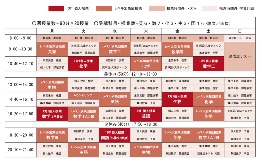 カリキュラム例①高卒本科生 私立大学 医学部志望