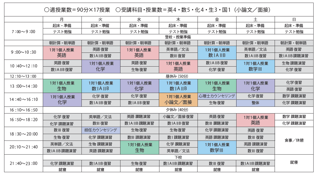例1: 国公立大学 医学部志望(高3生) の場合