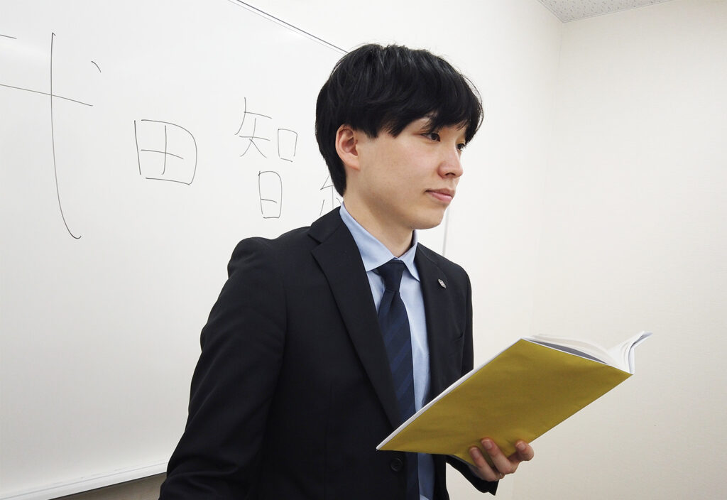 僕はまだ講師になって2年目なので、生徒の反応をみながら「どういった授業がやる気に繋がるのか」を研究しています。先輩の先生を手本に、話し方や話すスピードを工夫しています。また、標準語で授業をする日や逆にコテコテの関西弁で授業をする日、英語で解説をする日など色々です。