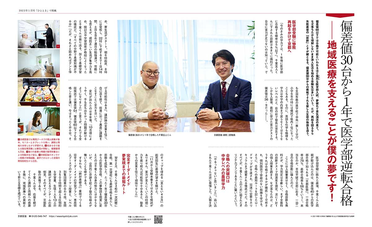 「なんとしてでも、医師になりたい」と京都医塾に入塾し受験生活が始まりました。