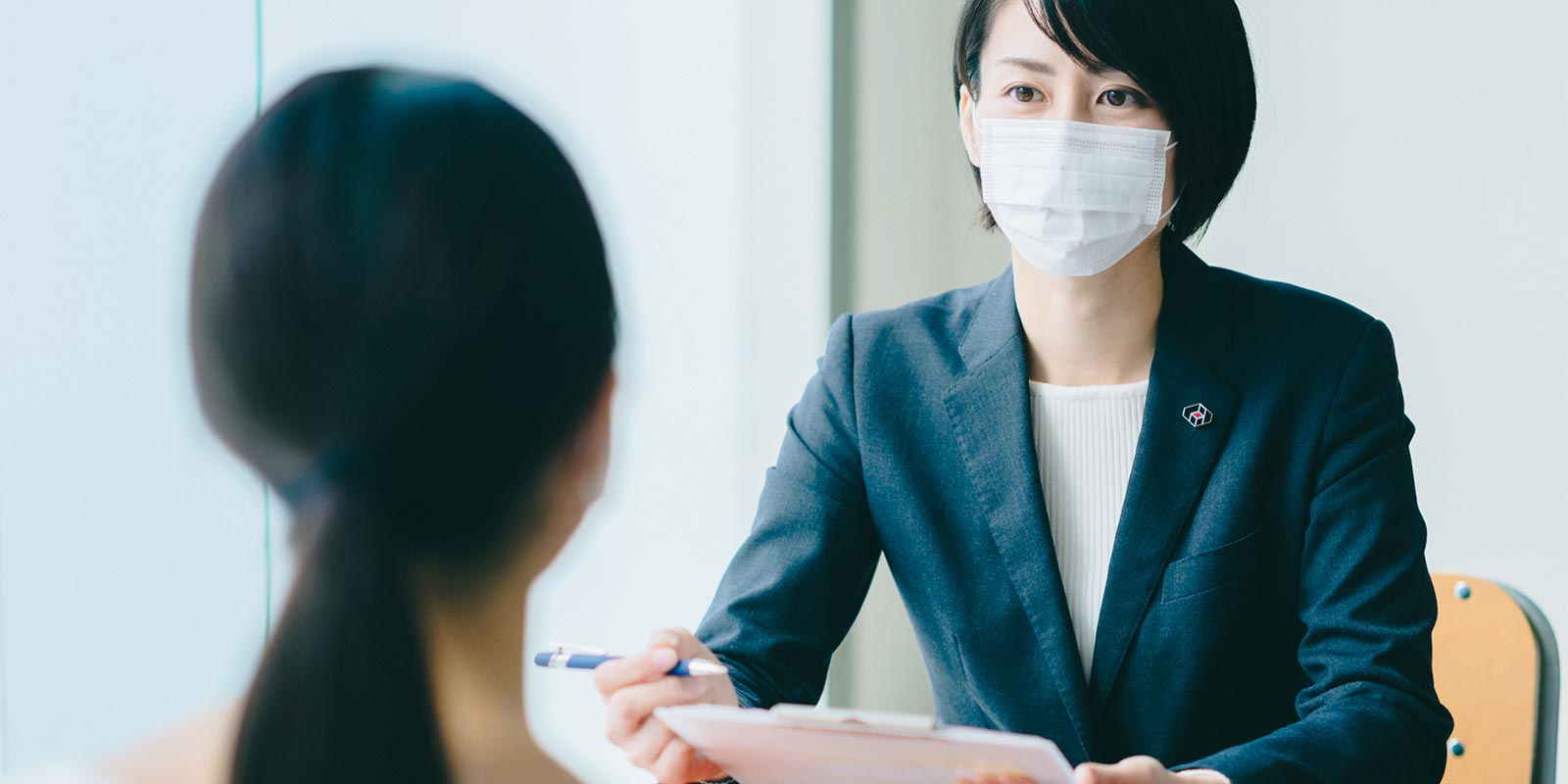 京都医塾では女子生徒には女性社員によるメンタルサポートを行っています。担任・副担任のほかに女性スタッフが2名担任し、月一回のカウンセリングで女性同士でなければ話しづらい、デリケートなことやプライベートなことまで、時には京都のお母さん・お姉さん役として、安心して相談できる場を用意しています。